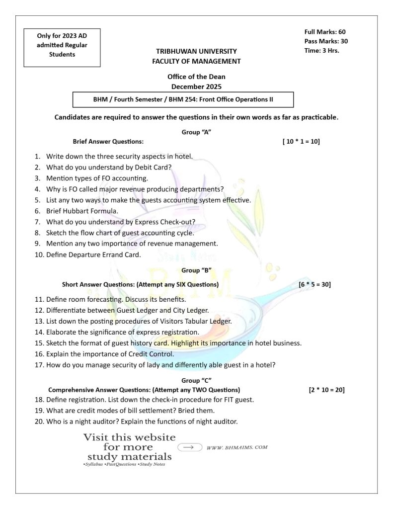 → Repeated question from Year 2017, question number 1 and 11 (Please refer back to that year) - List any responsibilities of night auditor.