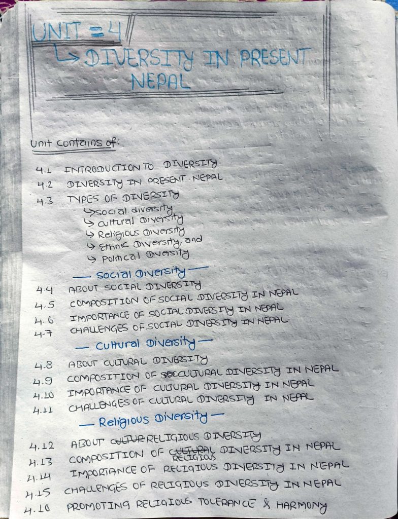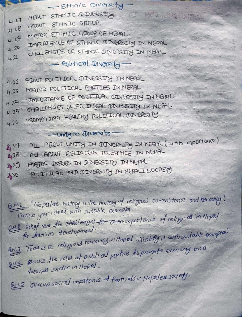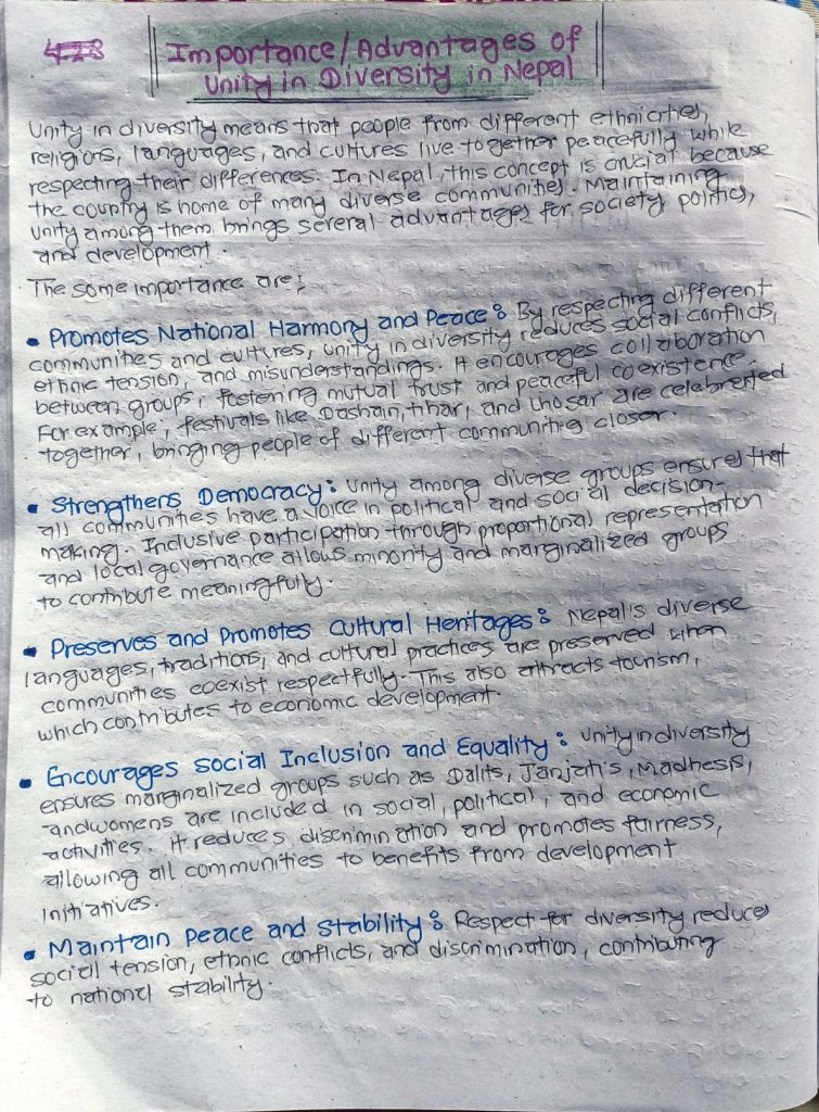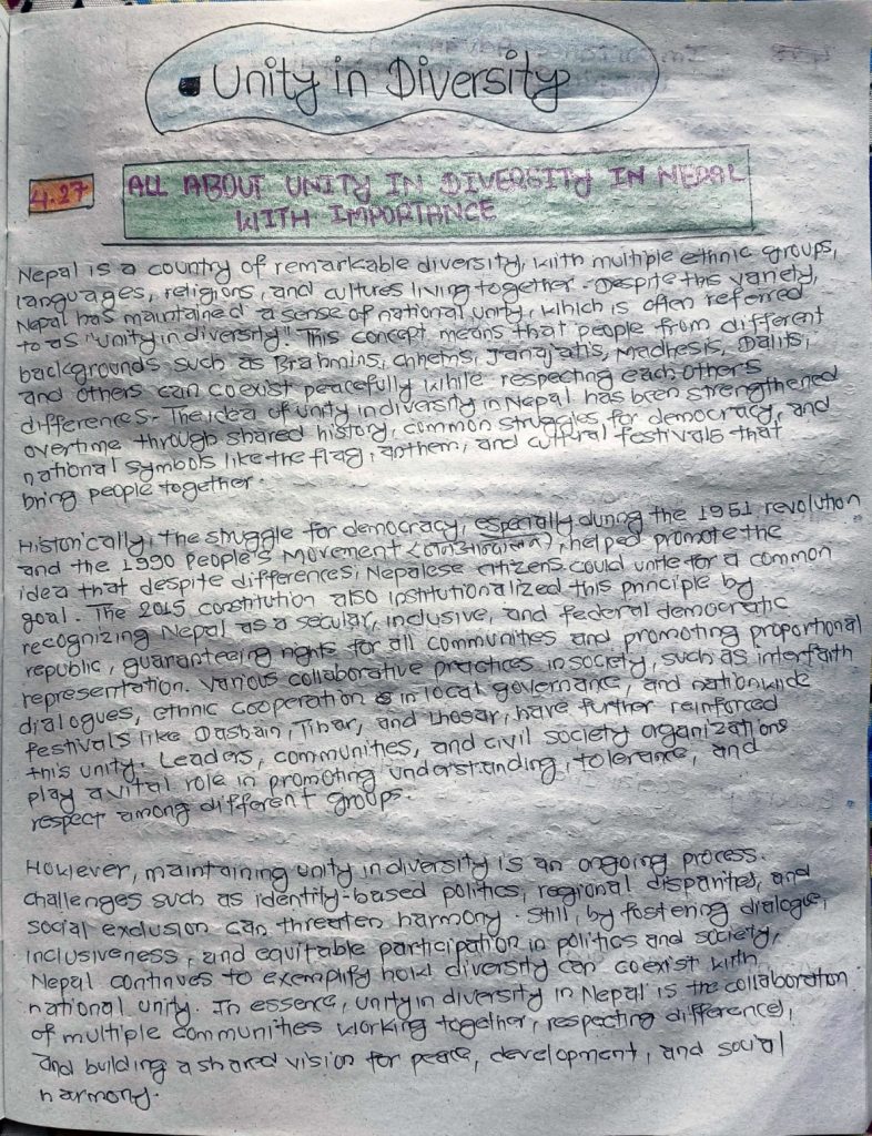 Social, Cultural, Religious, Ethnic and Political Diversity; Unity in Diversity in Nepal;