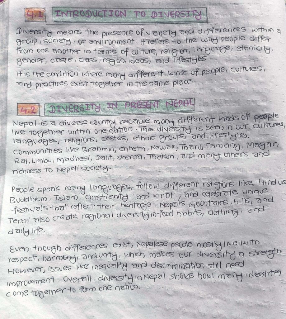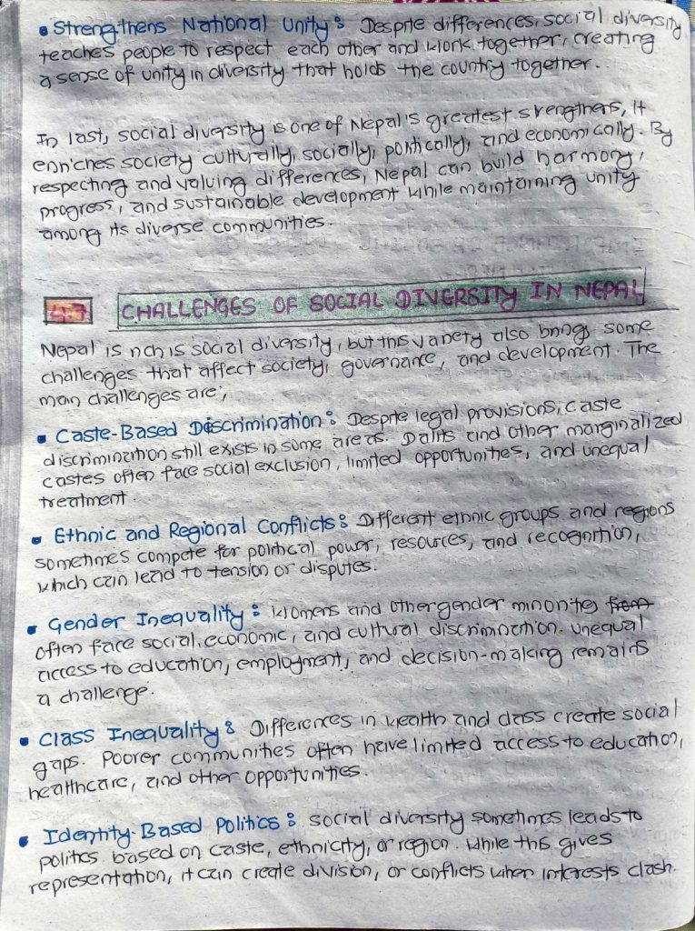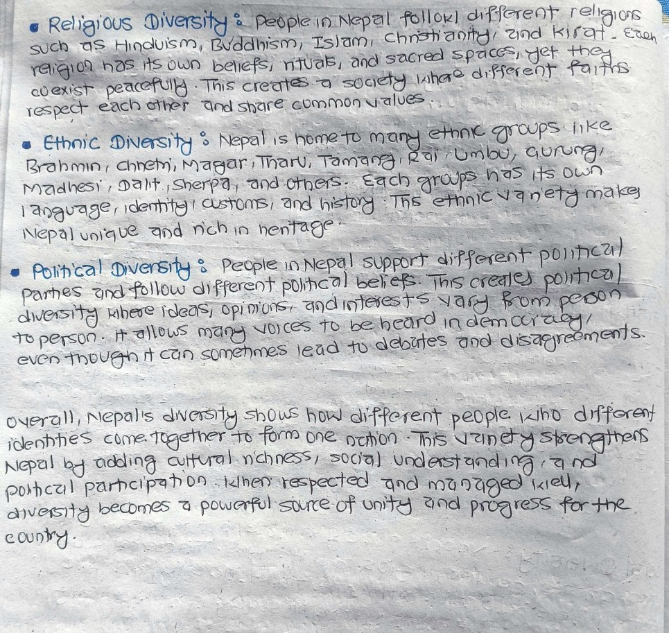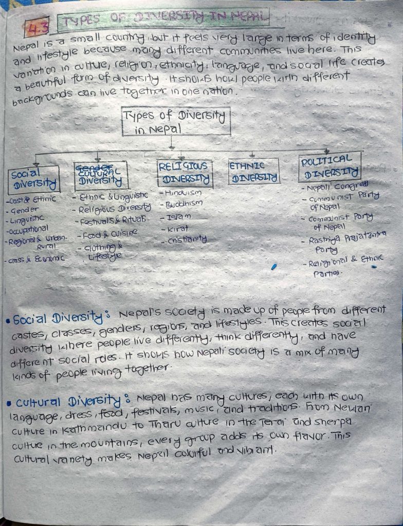 Social, Cultural, Religious, Ethnic and Political Diversity; Unity in Diversity in Nepal;