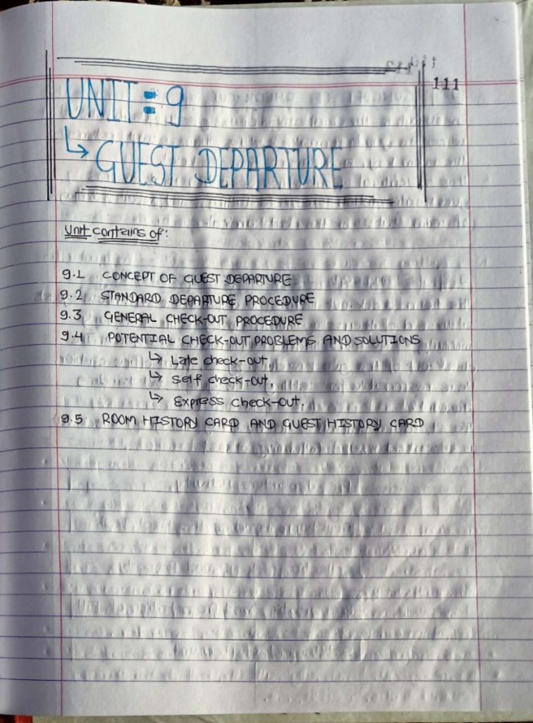 Standard Departure Procedure; General Check-out Procedure; Late Check-out; Self- Check-out and Express Check-out; Room History Card and Guest History Card