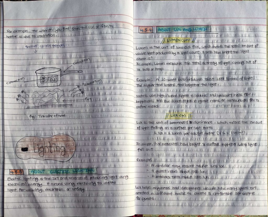 Heat: Conduction, Convection, Radiation; Introduction: lux and lumen; Sources of