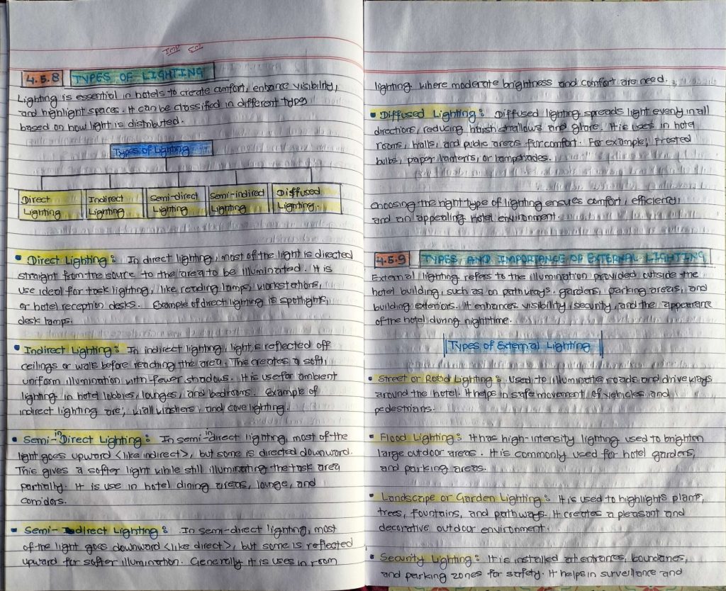 light. ;Types of Lighting : Direct Lighting ,Indirect Lighting, Diffused lighting, Semi- direct and Semi-indirect; Types and importance of External Light