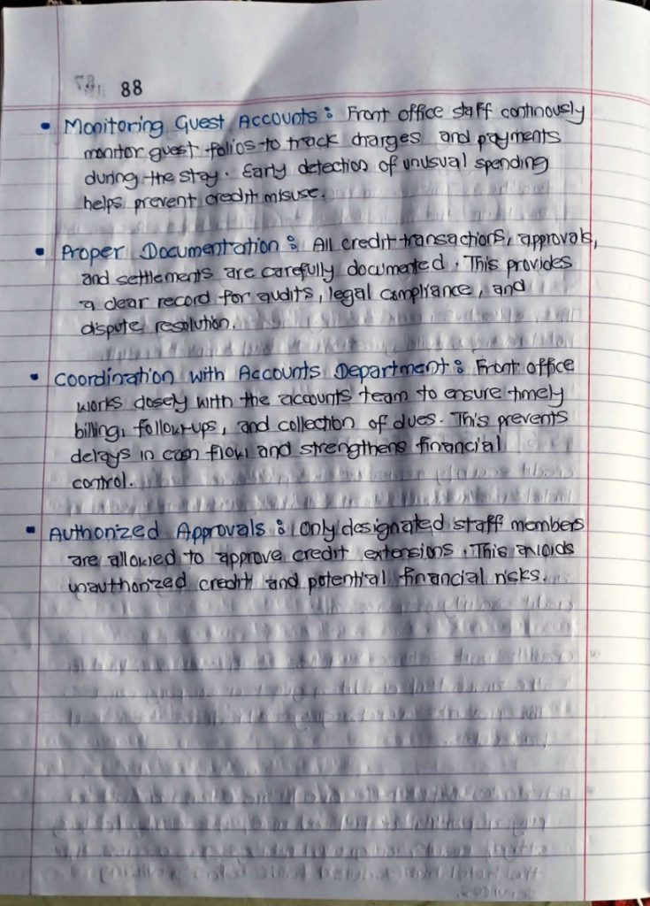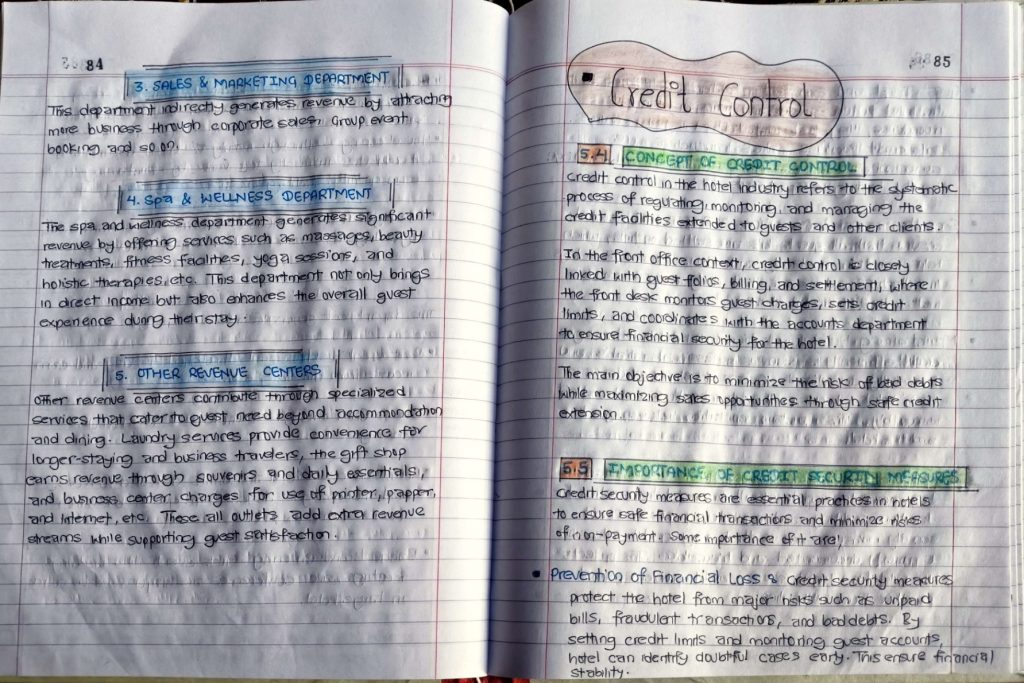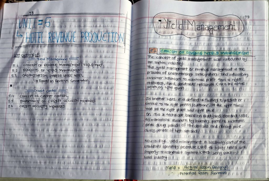 Concept and Benefits of Revenue Management; Organization Chart of Large Hotel on the basis of Revenue Generation; Credit Control (Importance and Credit Security Measures)