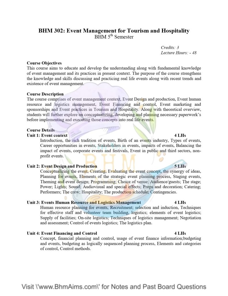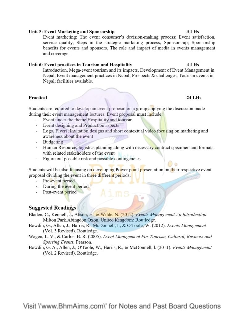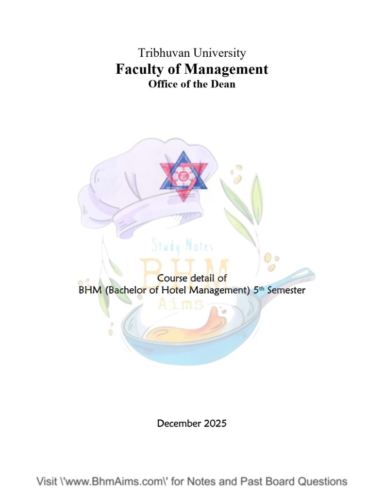 BHM 5th Semester Syllabus 2025 – Updated / Tribhuwan University BHM Syllabus / By BhmAims This is an updated syllabus / course of Bachelor in Hotel Management (Tribhuwan University) – for Fifth Semester. Join Our Facebook Group BHM 5th Semester New Updated Syllabus 2025Download