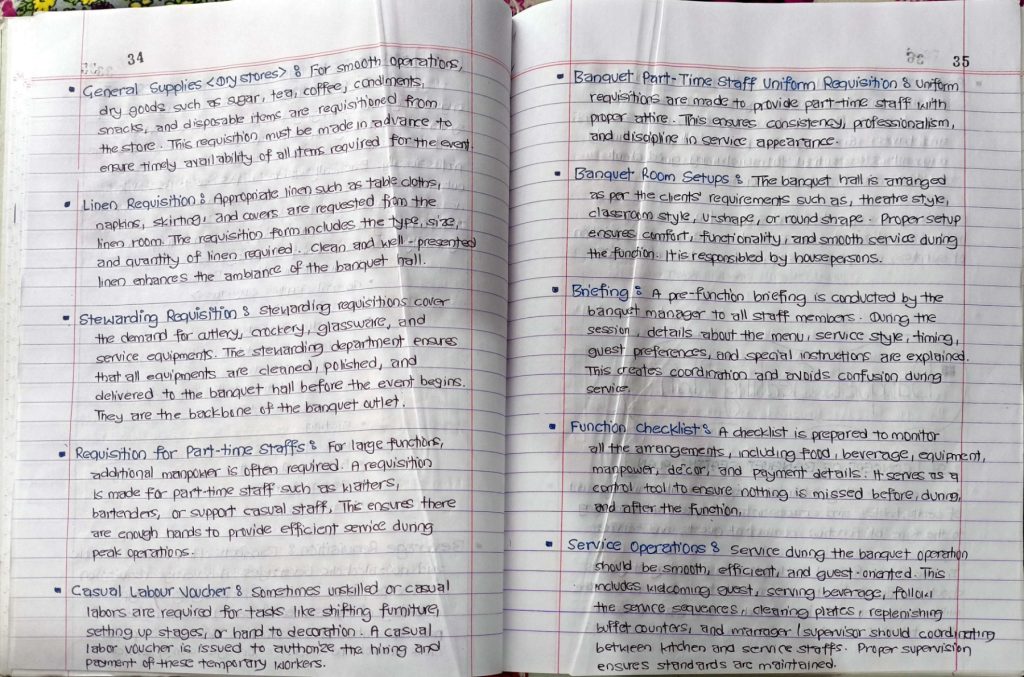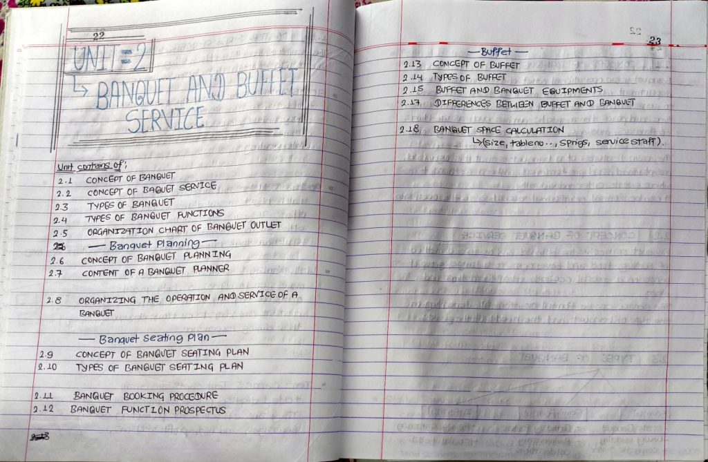 | 1.Introduction 2.Type of Banquet 3. Organization chart 3. Banquet planning 4. Organizing the operation & service of a banquet 5. Banquet seating plan 6. Banquet Space Calculation (size, table no., sprigs, service staff) 7. Banquet booking procedure 8. Banquet function prospectus (format) 9. Buffet and types 10. Buffet and Banquet equipments |