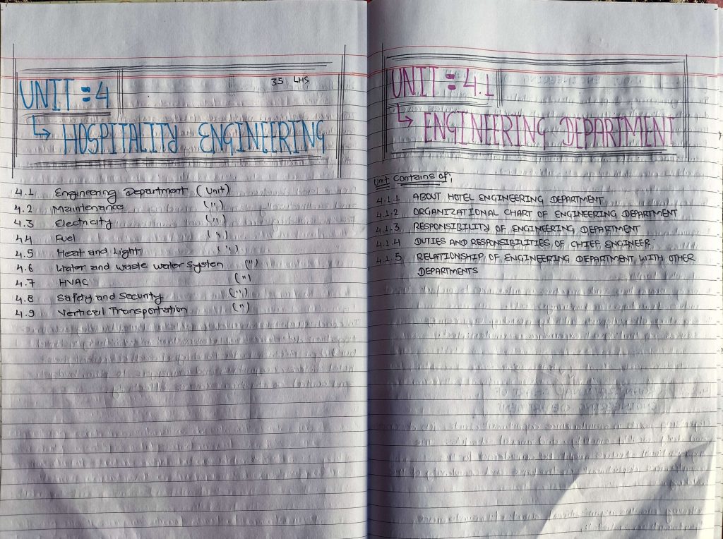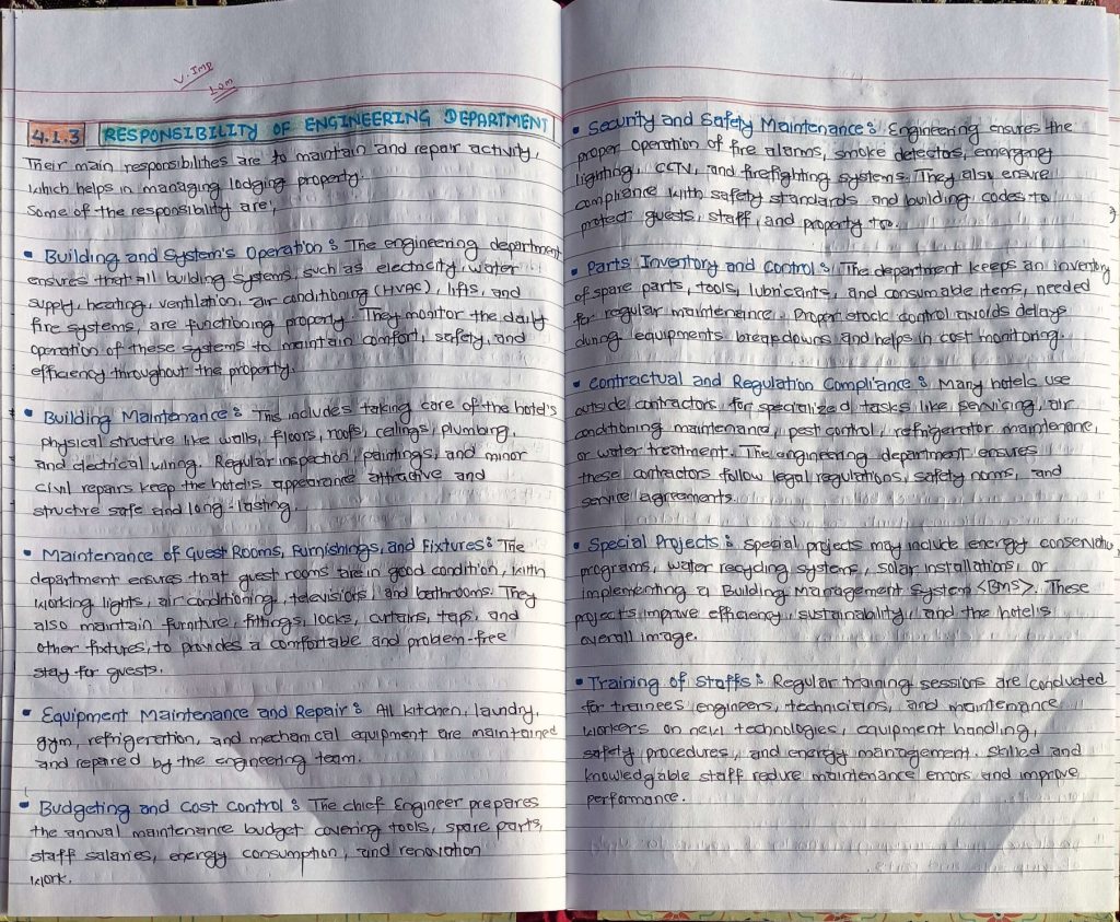 Responsibility of Engineering Department; Duties and responsibility of Chief
