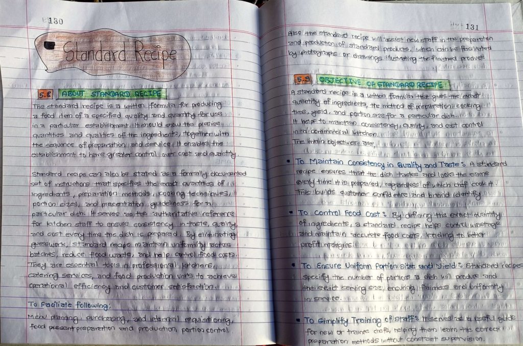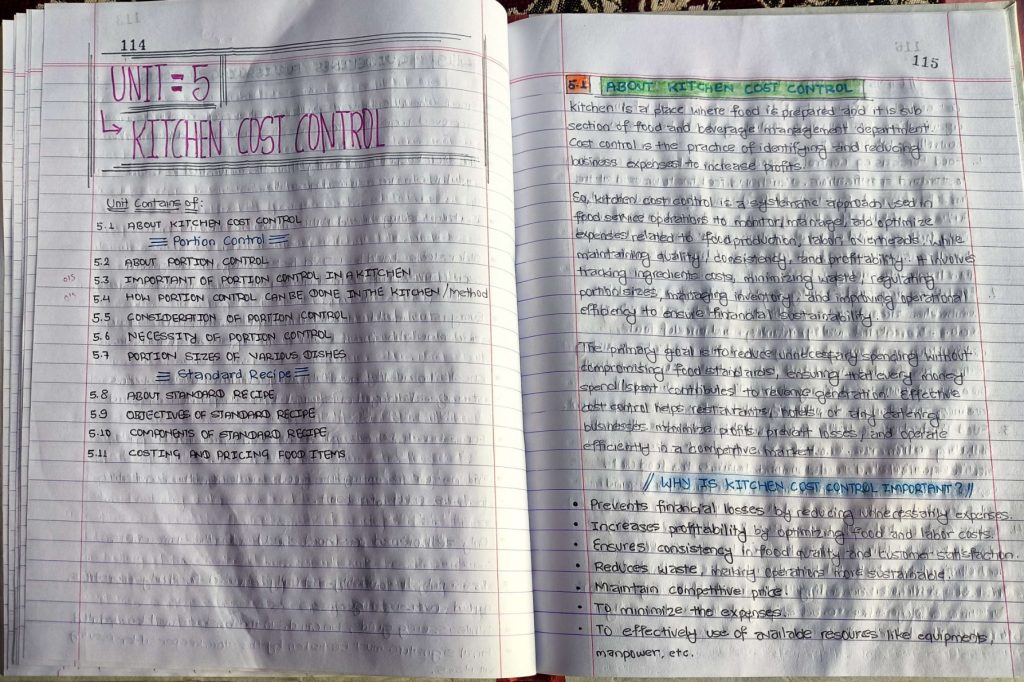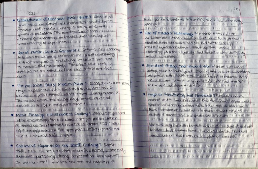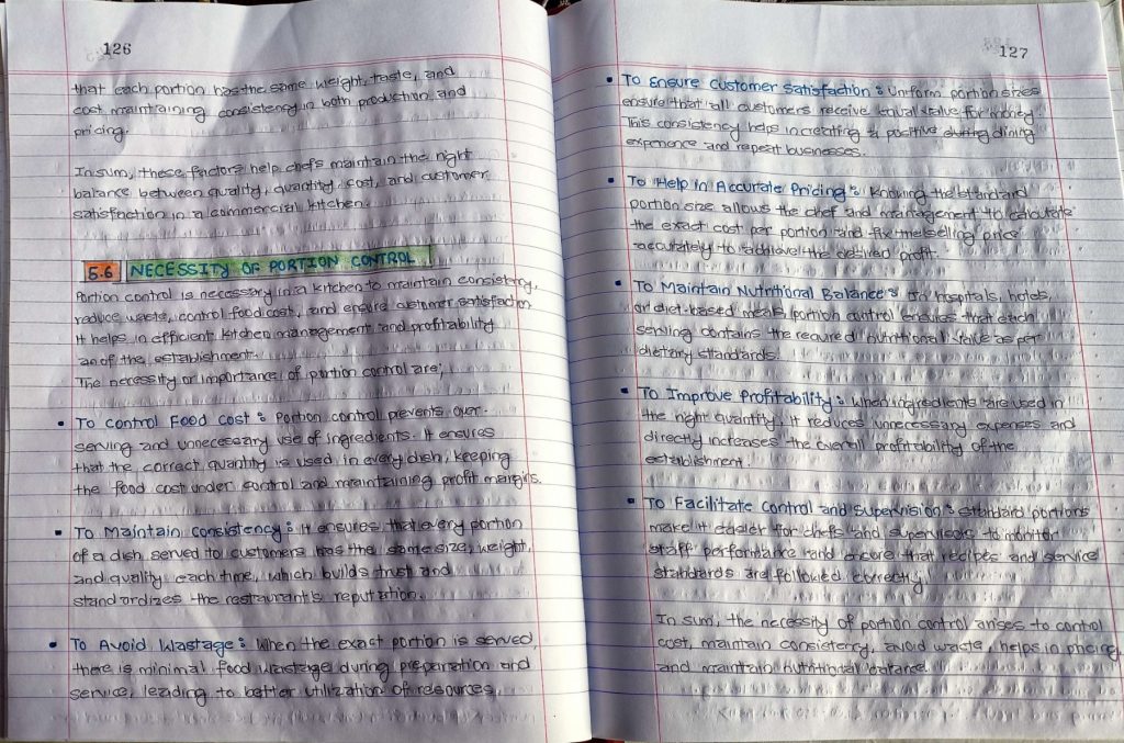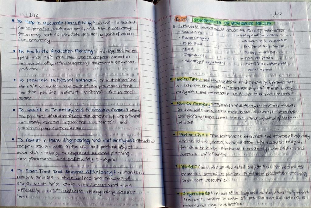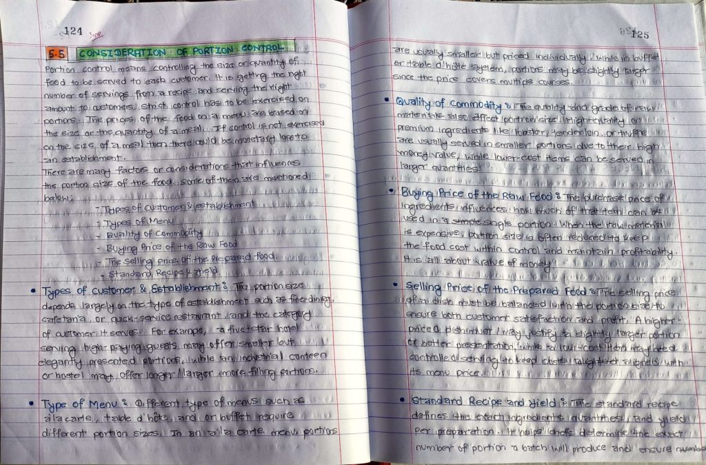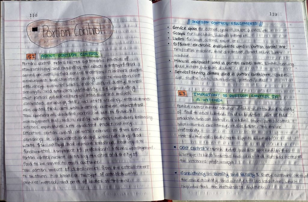 Introduction: Meaning, Definition of Portion Control and its Considerations, Necessity for Portion Control, Standard Recipe, Objectives and Components of Standard Recipe, Portion Sizes of Various Dishes, Costing and Pricing Food items.