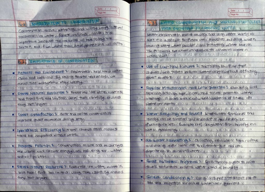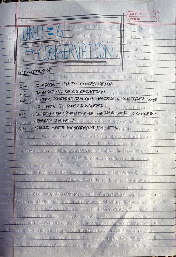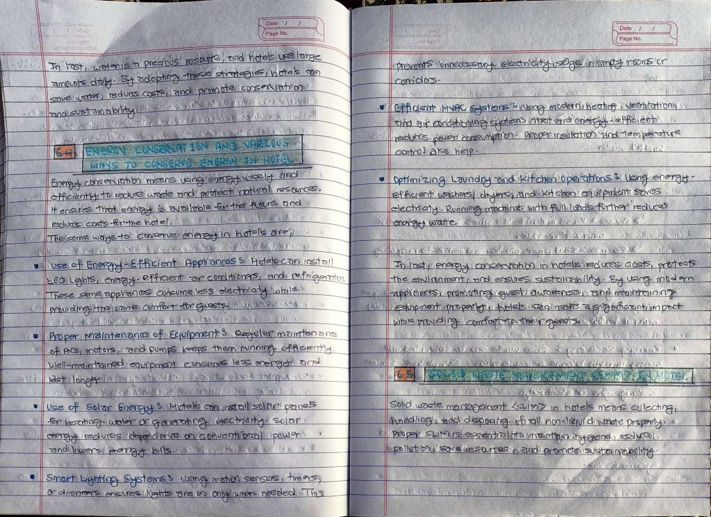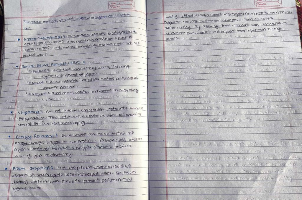 strategies used in Hotel to conserve water; Energy Conservation and various ways to conserve energy in Hotel; Solid Waste Management by Hotel